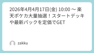 楽天ポケカ大量抽選!スタートデッキや最新パックを定価でGET 📢 ポケカコレクター&プレイヤー必見!楽天ブックスで超豪華ラインナップの【抽選販売】が始まります!こんにちは!いつも当ブログをご覧いただきありがとうございます。ポケカファンにとっ...